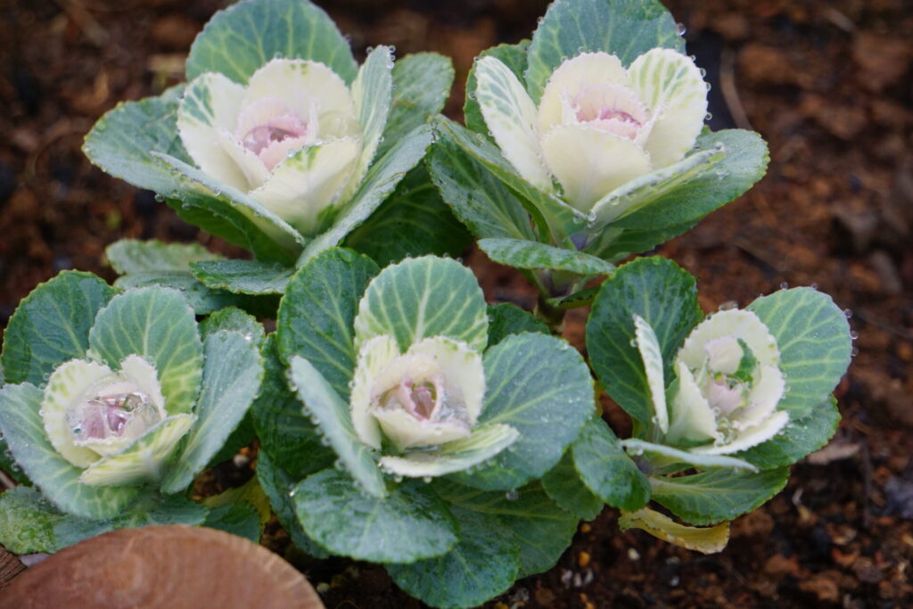 寒さで中心部の色が強くなる冬の定番植物。大きいフリル系から丸葉の小輪まで種類が多い。地植えでしっかり根付くと春まで長持ちします。