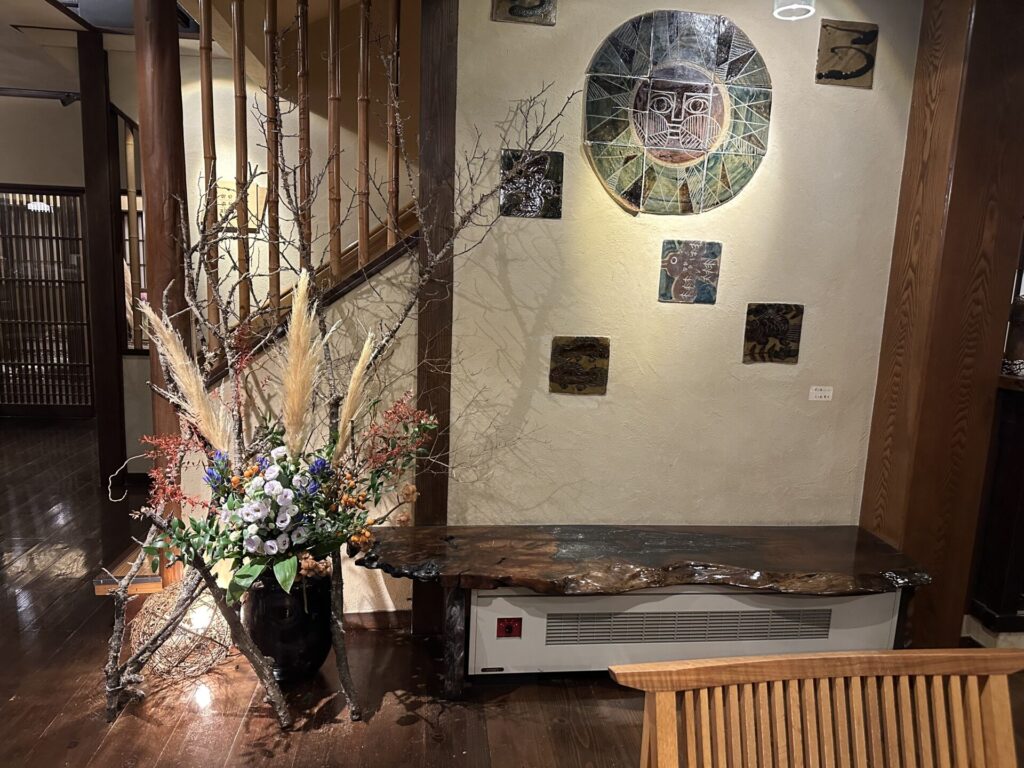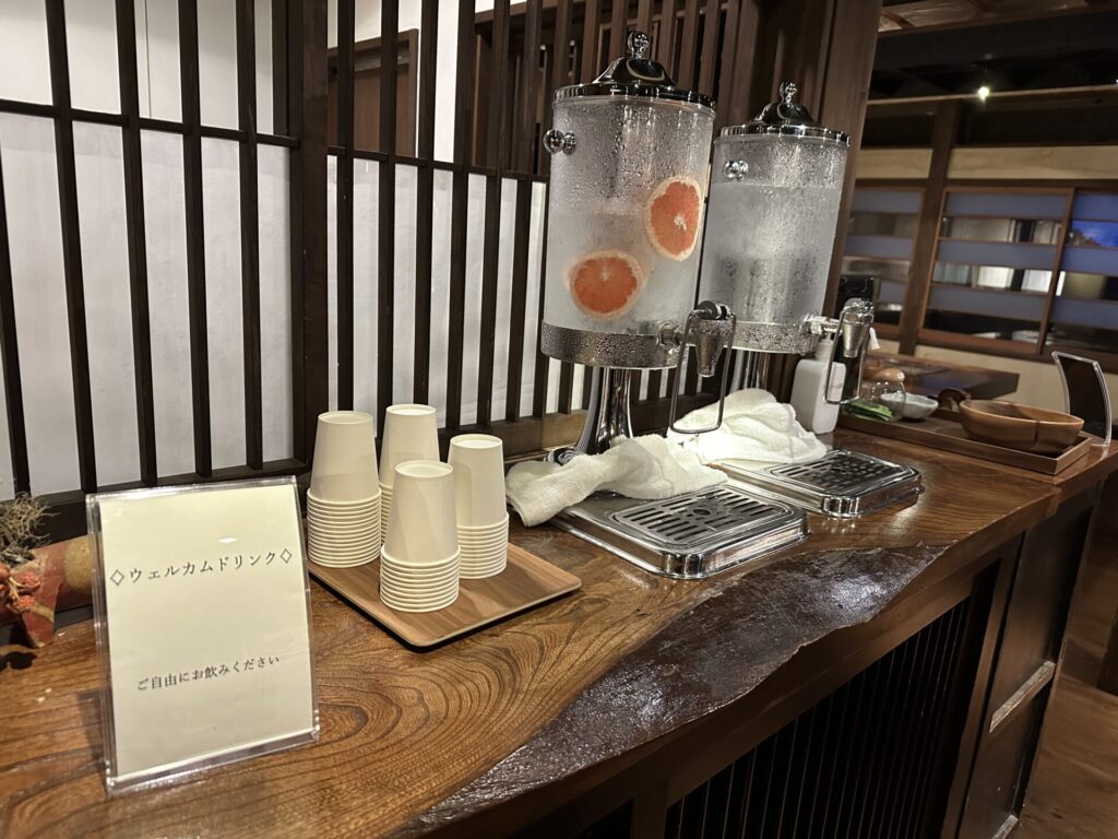 玄関を抜けると優しく木の香りが漂う落ち着いたロビーがお出迎え。スタッフの方が丁寧に迎えてくださり、落ち着いた雰囲気の中でチェックインを行います。