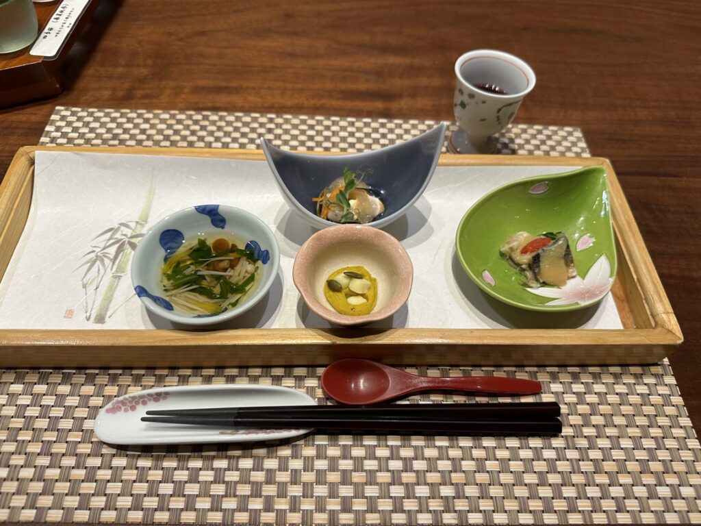 山の幸や旬の野菜が一品ずつ丁寧に盛り付けられていて、視覚でも楽しむことができます。